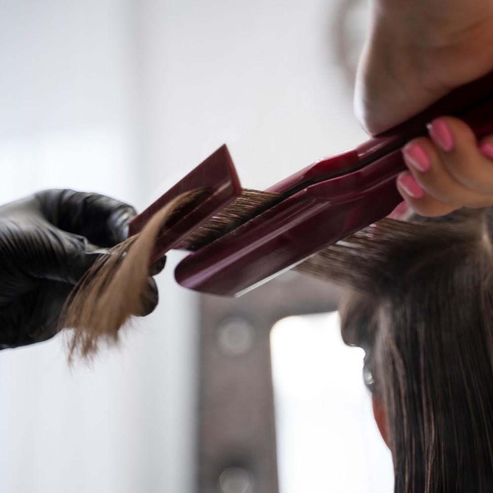 Uno de nuestros servicios estrella: el tratamiento de keratina. Ideal para quienes buscan un cabello más suave, brillante y fácil de manejar. Reduce el encrespamiento, alisa la fibra capilar y mejora su aspecto general, permitiendo un acabado sedoso y duradero.